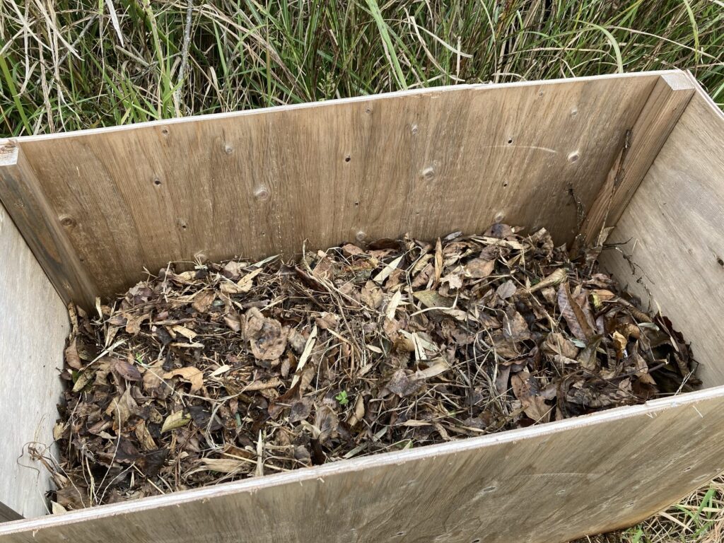 落葉だけだとやはり腐敗が遅かったので、最終的に土と牛糞、米ぬかを更に追加した。